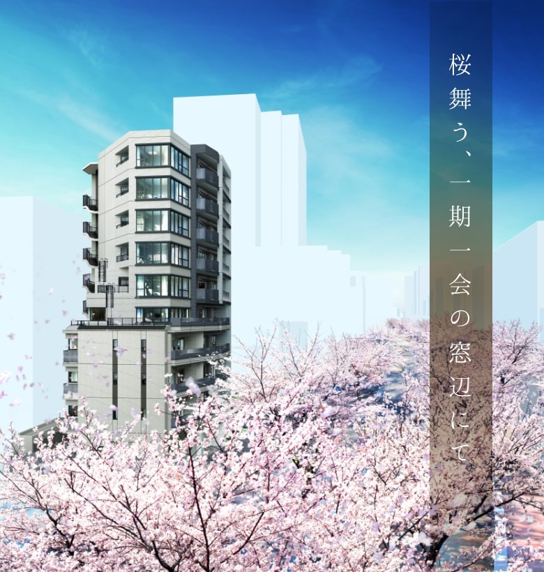 全邸角住戸に加え、桜並木に面した