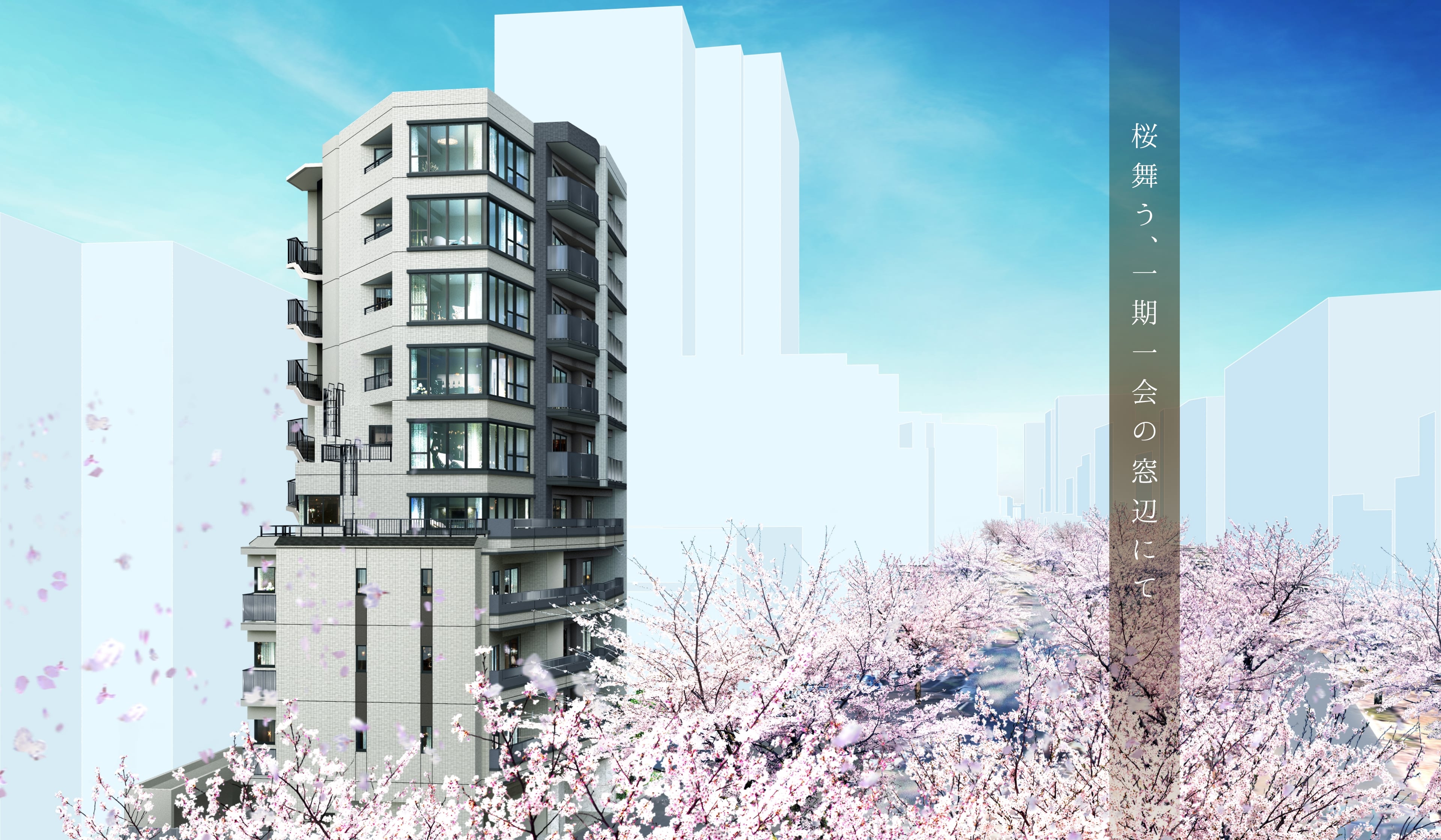 眼前に広がる桜並木との調和を実現。