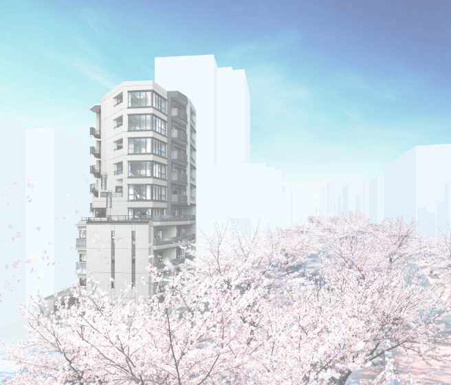 全邸角住戸に加え、桜並木に面した