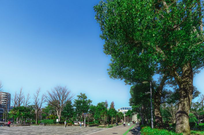 ※掲載の外観完成予想CGは計画段階の図面を基に書き起こしたもので、形状・色味等は実際と異なります。外観形状の細部、エアコン室外機、照明、避雷針等、一部省略、または簡略して おります。表現されている敷地内の植栽は、 竣工から初期の育成期間を経た状態のものを想定して描いており、竣工時は植栽の育成を見込んで必要な間隔を取って植えております。設計・施工上の都合により、設定位置・樹高・ 本数等変更される場合があります。植栽は、実際に植樹する植栽と樹形、枝ぶり、葉や色合いが異なる場合があります。また特定の季節の状況を示すものではありません。尚、竣工時には完成予想CG程度には成長しておりません。